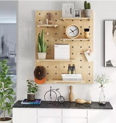 现在许多人家里都喜欢在墙面上装上洞洞板,因为它不仅仅是装修,更是一件收纳神器。洞洞板的收纳性仍是挺强的,能够把收纳的物件自由组合起来,比方给洞洞板搭配隔板、挂钩、钉子等配件,就能够轻松把东西挂在洞洞板上面了。